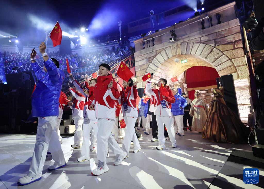2月22日,中国体育代表团在闭幕式上入场。图源:新华社