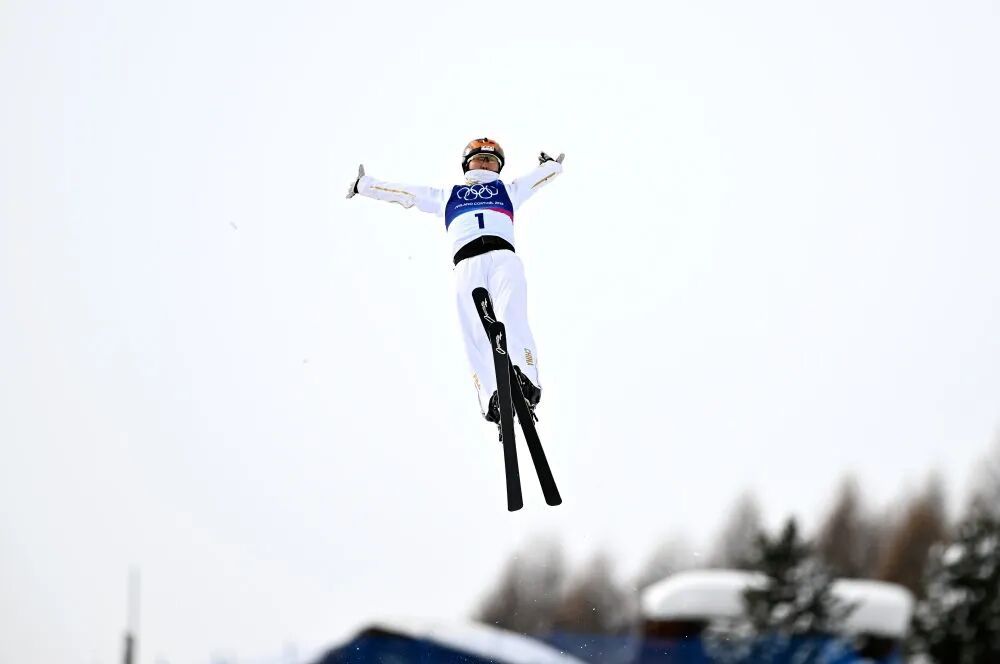 2月18日,中国选手徐梦桃在自由式滑雪女子空中技巧决赛中。图源:新华社